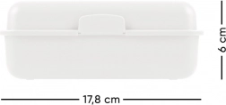 A 17,8 cm x 12,2 cm méreteivel ez a doboz könnyen hordozható és kiválóan alkalmas különféle ételek vagy apró tárgyak tárolására.