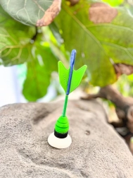 Aerodinamikus forma és tapadókorongos vég a stabil becsapódásért és a megbízható rögzülésért üvegen, csempén vagy lakkozott felületeken.