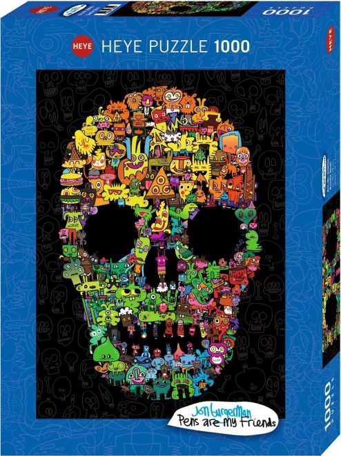 Ezek a minőségi puzzle-ok órákon át tartó, fókuszált szórakozást nyújtanak a modern illusztrációk kedvelőinek. A játékos, doodle-ökkel teli koponyakompozíció és a telt színek vonzó képet alkotnak, amely falon is remekül mutat, ajándéknak is kiváló.