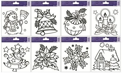 Készítsen csodás karácsonyi dekorációkat ezzel az üvegfestős sablonnal, amely angyal motívumokat tartalmaz különböző hangszerrel. Ez az emelt kontúros sablon ideális üvegfestékek használatához.