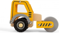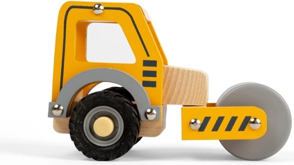 Az úthenger lekerekített élekkel rendelkezik, és színezése a természetes fa és a sárga lakk ötvözésével jön létre. A gumi kerekek lehetővé teszik a csendes mozgást minden felületen.