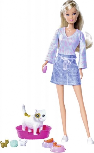 Élvezze az órákon át tartó szórakozást Steffi babával és három aranyos cicás barátjával. Ez az egyedülálló játék azoknak a gyerekeknek készült, akik szívesen gondoskodnak kis állatbarátaikról, és számtalan lehetőséget kínál képzeletbeli játékra: