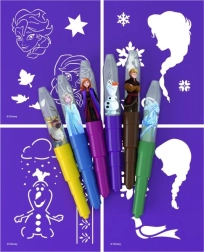 Fújó filcek Jégvarázs motívumokkal órákon át tartó kreatív szórakozást nyújtanak a gyerekeknek! A készlet tartalmaz 6 színes filcet és 4 különböző papírsablont, melyeket a népszerű film ihletett.
