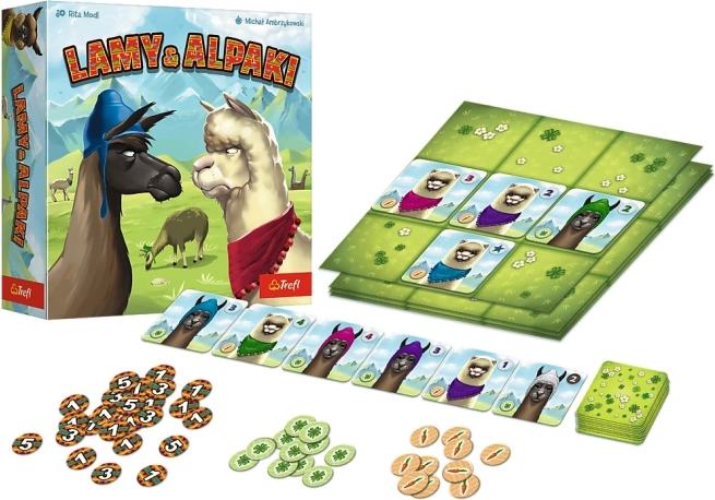 A Lámák és alpakák TREFL társasjáték pörgős családi szórakozás, amely fejleszti a logikus gondolkodást, a figyelmet és a minták gyors felismerését. A cél, hogy a saját játékostábládra úgy helyezd a kártyákat, hogy három egymás melletti kártya közös jeggyel rendelkezzen – ez lehet az állat fajtája, a kártyán szereplő szám vagy a kedves kiegészítők színe. Minél több egyezés, annál több pont és annál nagyobb esély a nyerésre.