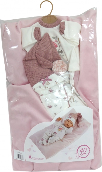 A készlet 40 cm magas csecsemő típusú babákhoz készült. Könnyű öltöztetés és stabil tartás még intenzív játék közben is.
