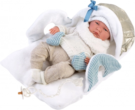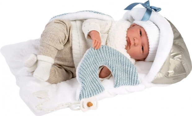 Add meg babádnak a stílust és kényelmet ezzel a 6 részes NEW BORN ruhaszettel a 40–42 cm-es babákhoz. Kézzel készítve Spanyolországban, a szett tartalmaz egy puha, kapucnis, hordozó pántokkal ellátott alátétet, amely megkönnyíti az öltöztetést és a babával való utazást. A finom, semleges és kék árnyalatú minőségi kötött anyagok támogatják a kreatív és gondoskodó játékot 3 éves kortól.