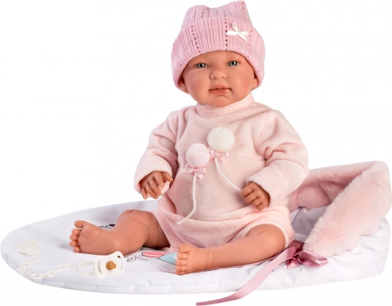 Adj stílust és kényelmet babádnak ezzel a 2 részes babaruhával és hálózsákkal a New Born babához, 43–44 cm méretben. A szett kézzel készült Spanyolországban, kiemelkedik minőségi kidolgozásával, és ideális a szerepjátékokhoz és a gyerekek gondoskodó készségeinek fejlesztéséhez 3 éves kortól.
