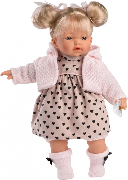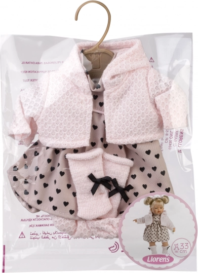Ajándékozzon új ruhatárat babájának a Llorens elegáns babaruhájával 33 cm-es babákhoz. A szett gondosan kézzel készült Spanyolországban, kiemelkedő anyagminőséggel és időtálló dizájnnal, amely tökéletes a mindennapos játékhoz.