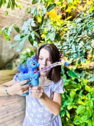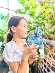 Az egyszarvú nemcsak buborékokat fúj, de minden gombnyomáskor zenél is.