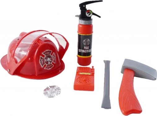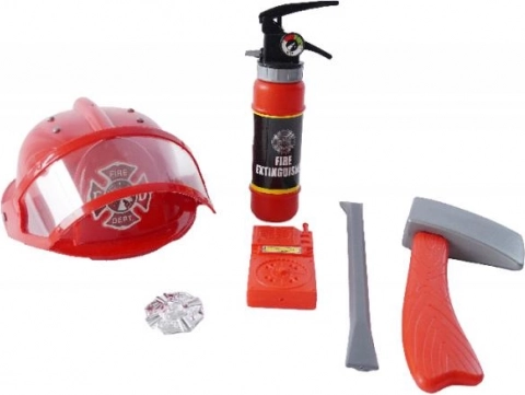 PLEJO tűzoltó szett sisakkal, tűzoltó készülékkel és eszközökkel