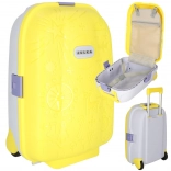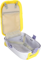 Könnyű és tartós gyerek kabinbőrönd két kerékkel és kihúzható fogantyúval a kényelmes utazáshoz. Nagy kapacitást kínál a két rekesznek köszönhetően, LED világító kerekeket a jobb láthatóságért és szórakozásért, valamint lehetőséget névvel való megjelölésre matricákkal. A ragyogó sárga szín és a játékos, domború motívumok elbűvölik minden kis utazót.