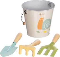Tegye lehetővé gyermekeinek, hogy megtapasztalják a kerti munka örömét ezzel a praktikus Goki kerti szerszám készlettel. Minden eszköz fából készült nyéllel rendelkezik, amely kényelmes és biztonságos a gyerekek kezéhez.