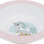Aranyos gyerek tál egyszarvú mintával, amely vidámabbá teszi minden étkezést. Ergonomikus kialakítású a könnyű fogásért, BPA-mentes, és mikrohullámú sütőben használható.