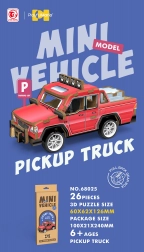 A Pickup modell összeszerelés után a 13x6,2x6 cm méreteket éri el, és a visszahúzó mechanizmusnak köszönhetően elkészülte után mozgásra képes.