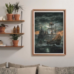 Ez a prémium kirakó a viharos tengeren haladó, drámai kalózhajó motívumával a kihívásokat kedvelőknek és a kalandtematikájú képek rajongóinak készült. A kompakt doboz helyet és környezetet kímél, míg a magas minőségű nyomtatás élethű színeket és finom részleteket ad.