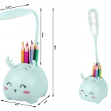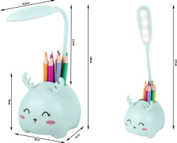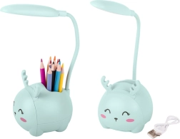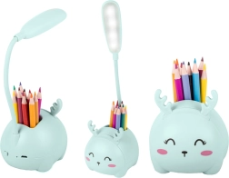 A vidám állatfigurás gyerek lámpa ötvözi az éjszakai fényt, a ceruzatartó szervezőt és a telefontartót. A rugalmas karon lévő 6 LED kellemes, mégis elegendően erős fényt ad olvasáshoz és elalváshoz. USB-n keresztüli töltés, éles élektől mentes, biztonságos kivitel és kellemes tapintású műanyag felület – praktikus segítőtárs minden gyerek íróasztalán.