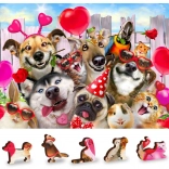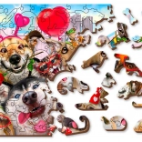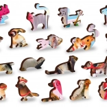 A puzzle egyedien formázott darabokat tartalmaz, amelyek közül néhány apró figuraként is állhat.