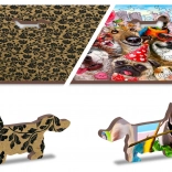 Minden puzzle elülső oldalán kép van, míg a hátoldalon formai minta, ami biztosítja a dupla kirakási lehetőséget.