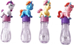 Ez a buborékfújó dupla adag örömöt nyújt: a kupak lecsavarása után a buborékfolyadékba mártott, klasszikus karikás pálcikát találod, amellyel könnyedén rengeteg szivárványos buborékot fújhatsz. A kupak tetején egy szép unikornis figura ül, amely könnyen levehető, és önálló kis játékká válik.