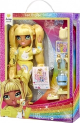 Indítsd be a pizsamapartit a RAINBOW HIGH Junior PJ Party – Sunny Yellow babával! Ez a stílusos barátnő aranyos sárga pizsamát visel, hosszú, masnikkal díszített copfokat, és tematikus kiegészítőkkel érkezik a zenés szórakozáshoz. A teljesen ízületes kialakításnak köszönhetően rengeteg pózt felvesz, és kreatív játékra inspirál egész nap és este.