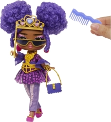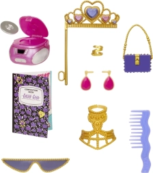 Cassie Cool csillogó szettjével és feltűnő lila hajával hódít. A készlet tartalmaz szemüveget, táskát, koronát és további divatos darabokat a végtelen kombinációkhoz.