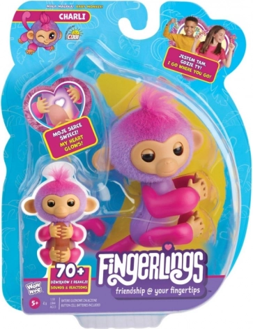 Ha a majmot az ujjadon hordod, világítani kezd a szíve! A majom lenyűgöz különféle reakcióival. Érintsd meg az orrát és adott esetben egy puszit ad, hallhatod hogyan beszél vagy felfedezheted más reakcióit. Simogasd meg a fejét, és új dolgokkal lep majd meg! A majom szereti fejjel lefelé lógatni magát! Játszhatsz vele "kukucsot" is.