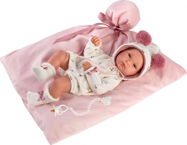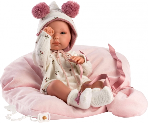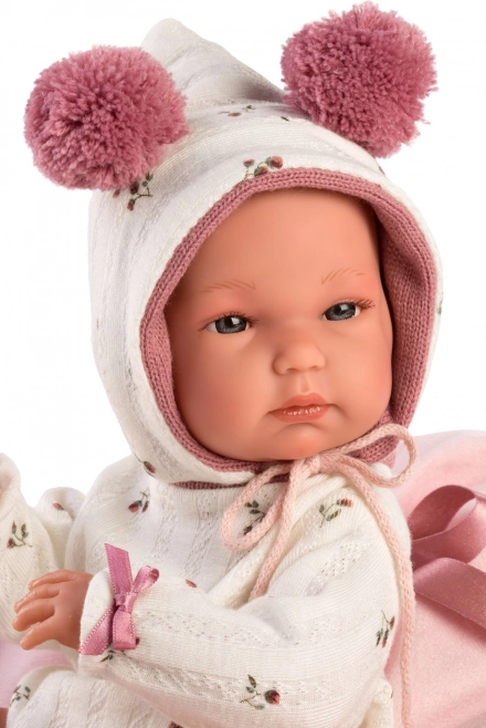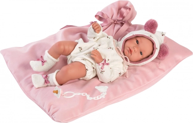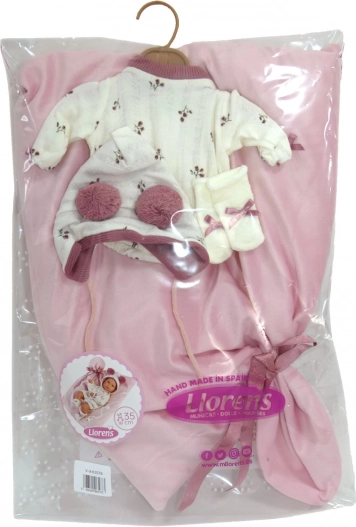 A csomag része egy puha masnis takaró a baba kényelmes elhelyezéséhez, a praktikus áttetsző csomagolás műanyag vállfával, valamint az igényes kézi spanyol gyártás, amely a gyakori játék mellett is hosszú élettartamot biztosít.