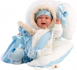 A díszzsebkendős ruhácska és a masnis, pántos puha párna elegáns és praktikus felszerelést nyújt a 40–42 cm-es NEW BORN babákhoz.