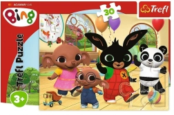 A Bing meséből ismert kedvelt szereplőkkel ellátott puzzle szórakozást és készségfejlesztést nyújt a gyerekeknek. Tartalmaz 30 színes darabot, amelyek ideálisak 3 éves kortól, és tökéletesen alkalmasak a kicsi gyerekkezekhez.