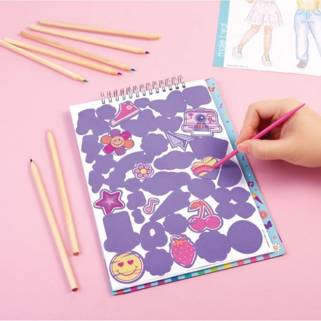 Ki ne szeretné a kaparós művészetet és a divatot? Mi a kettőt egyesítettük! Kaparással fedd fel az alsó, divatterveket ábrázoló mintát. A hagyományos, figurás kifestők és matricák teljessé teszik a divattervet.