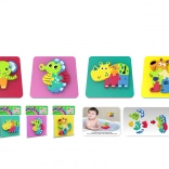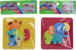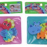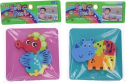 puha habszivacs puzzle-lal 14x14 cm-es formátumban, amely aranyos állatfigurákat tartalmaz.<4div>