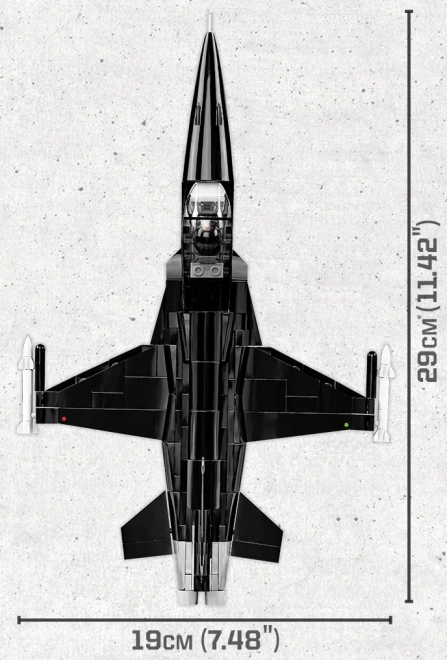 A COBI márka 332 építőeleméből egy lenyűgöző modellt építhetsz, jellegzetes fekete festéssel és piros csillag emblémákkal, mintha csak a filmből repült volna ki. A modell mozgó elemeket tartalmaz, mint a szárnyak, levehető futókerekek, valamint egy nyitható pilótafülkét pilótafigurával, sisakján az ikonikus vörös csillaggal. Természetesen jár hozzá kocka talapzat és egy tábla a Top Gun film hivatalos logójával.