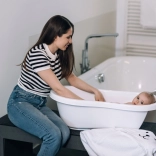 Az ergonomikus fürdető fekvőbetét megtámasztja az újszülöttet és megkönnyíti a fürdetést,