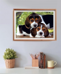 Minden egyes darab strapabíró, vastag kartonból készül, és a magas minőségű nyomtatásnak köszönhetően a színek és a szőrzet részletei, valamint a bájos arckifejezések is remekül érvényesülnek. A 49 × 36 cm-es kész kép kiválóan alkalmas keretezésre és az otthon díszítésére.