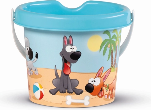 Színes vödör vidám kiskutya motívummal, ideális homokozáshoz. Olaszországban készült kiváló minőségű műanyagokból, garantálja a biztonságos és szórakoztató pillanatokat gyermekének.