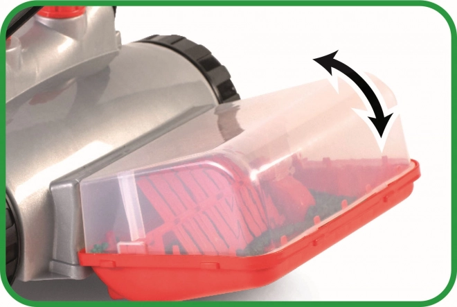 Műanyag gyerek fűnyíró gyűjtőkosárral, szórakoztató kerti játékhoz. A kosárban kis zöld hengerek vannak, amelyek mozgás közben repülő fű hatást keltenek. A játék Olaszországban készült minőségi műanyagokból, könnyű és már 10 hónapos kortól ajánlott.
