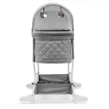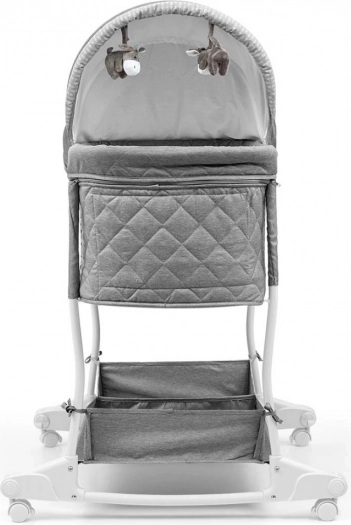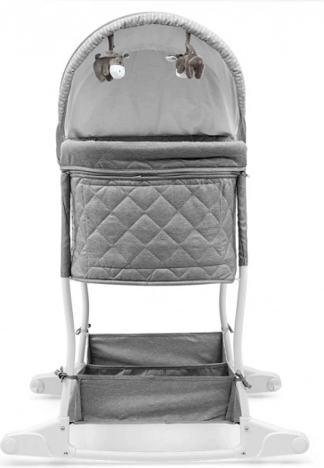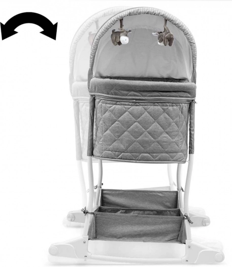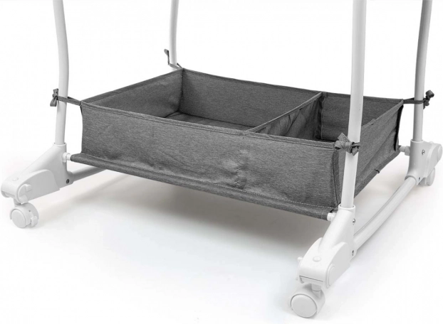 A kosár praktikus, kétrekeszes alsó tárolóval rendelkezik a baba kellékeihez. Intuitív használata gördülékeny váltást biztosít a kosár és a kiságy funkciók között. A kupola és a fekvőfelület huzatai levehetők és kímélő mosással tisztíthatók, a puha matrac pedig maximális kényelmet nyújt az alváshoz.