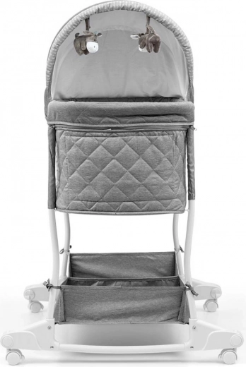 A kosár praktikus, kétrekeszes alsó tárolóval rendelkezik a baba kellékeihez. Intuitív használata gördülékeny váltást biztosít a kosár és a kiságy funkciók között. A kupola és a fekvőfelület huzatai levehetők és kímélő mosással tisztíthatók, a puha matrac pedig maximális kényelmet nyújt az alváshoz.