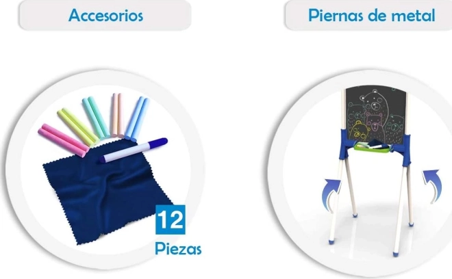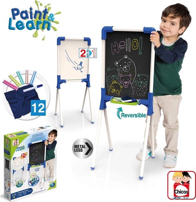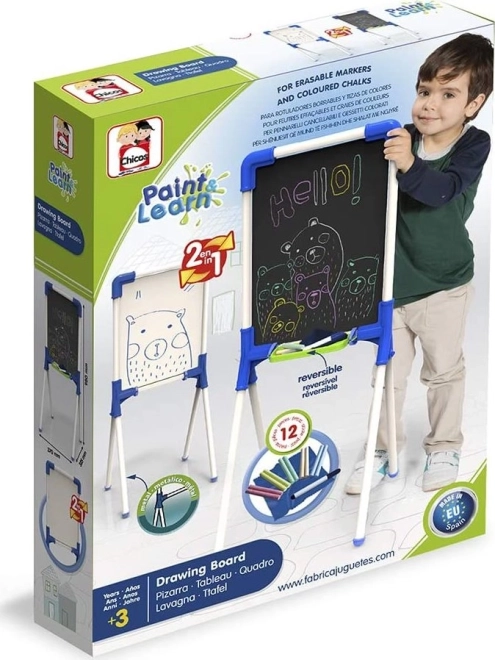 A Chicos gyerek kétoldalas tábla 2 az 1-ben kitűnő eszköz kis művészek számára. Sokoldalú írási és rajzolási lehetőségeket kínál, amelyek támogatják a kreativitást és a tanulást.