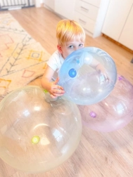 Óriási felfújható buborék, akár 75 cm átmérővel, amely órákig tartó szórakozást nyújt otthon és a szabadban. Tartós, könnyen felfújható, a gyerekek pedig pattogtathatják, görgethetik, sőt a fantáziájuk szerint akár rá is ülhetnek. Elérhető különböző színekben, 3 éves kortól ideális.