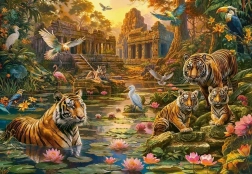 A tigrisek birodalmának motívuma megszólítja az állatkedvelőket és a tapasztalt kirakózókat egyaránt. A puzzle ideális kikapcsolódáshoz, a türelem és a koncentráció fejlesztéséhez, és elkészítve, bekeretezve szép dekoráció is lehet.