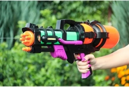 Ez a vízipisztoly méretet, teljesítményt és kényelmet ötvöz. Az óriási, 1,25 literes tartály ritkább utántöltést igényel, a kb. 6 méteres hatótáv pedig erőteljes vízsugarat biztosít. A használat pofonegyszerű: csavard le a tartályt, töltsd meg vízzel, zárd vissza, majd az alsó csúszkával pumpálj – és már kész is a spriccelés.