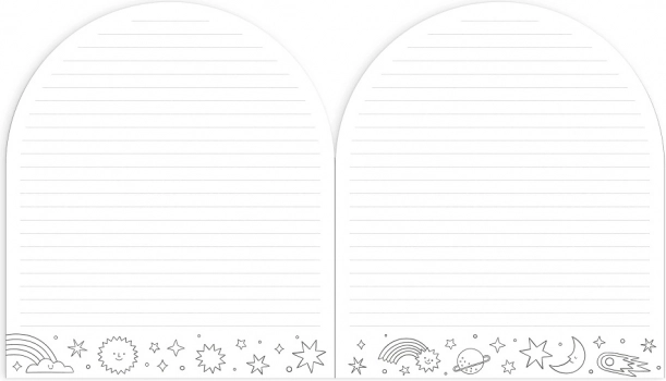 Kezdj el alkotni a csillagos és szivárványos motívumokkal díszített vonalas oldalakon.