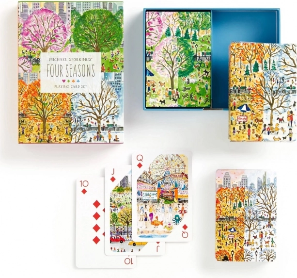 Ezzel a design készlettel egyedi hangulatot visz a játékestekbe. Minden paklit eredeti városi és tájképi illusztrációk díszítenek, amelyeket a tavasz, nyár, ősz és tél ihletett. Két teljes pakli található egy masszív, fiókos dobozban mágneses zárással a könnyű és biztonságos tárolásért.
