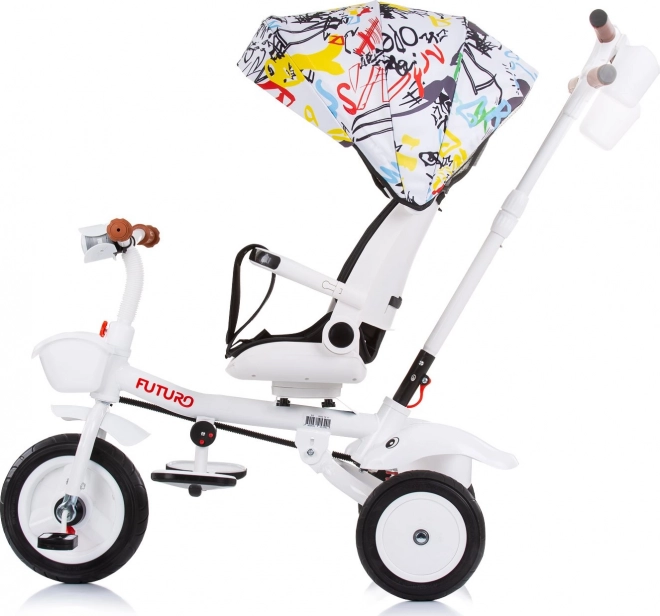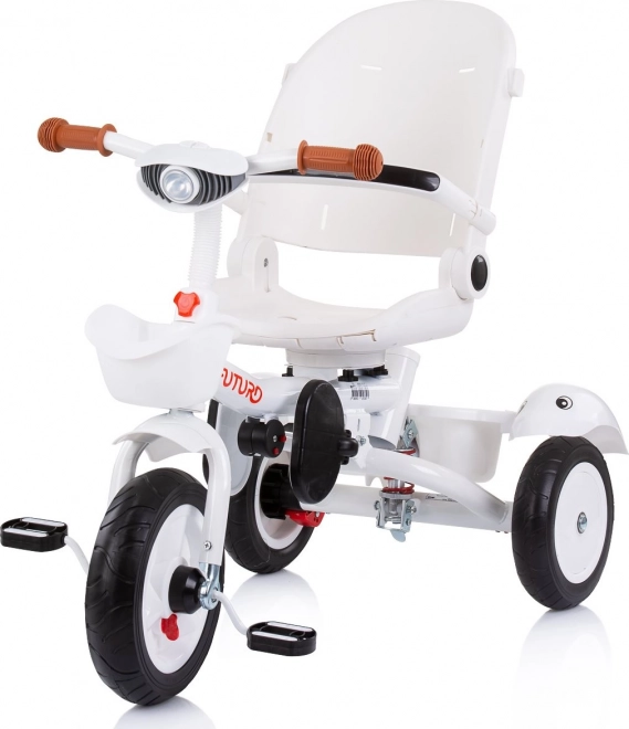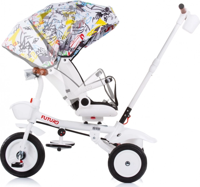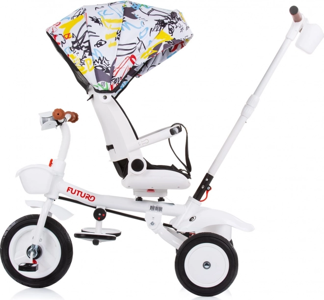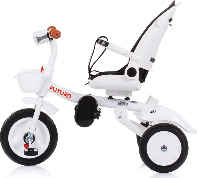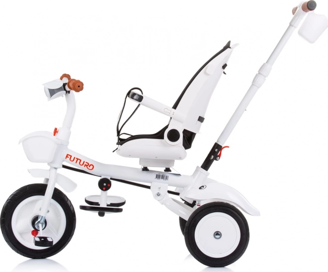 A Chipolino Futuro 2 az 1-ben tricikli alkalmazkodik a gyermek és a szülők aktuális igényeihez. Szülői irányítású módban teljes kontrollt biztosít, később önálló pedálozásra váltható. Az ülés menetirányba és azzal ellentétes irányba is forgatható, továbbá 2 döntési pozíciót kínál a hosszabb séták kényelméért.