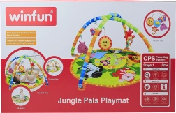 Vidám, dzsungel mintás játszószőnyeg puha felülettel és levehető játékhíddal, amely biztonságos helyet kínál a babának a világ felfedezésére. Támogatja a mozgásfejlődést, az érzékelés fejlesztését és a tummy time-ot a különböző magasságokban elhelyezett, színes függő játékoknak köszönhetően. A szőnyeg könnyen összehajtható, géppel mosható, és együtt nő a gyermekkel a háton fekvéstől a hason töltött időn át egészen az ülésig és az első mászásokig.