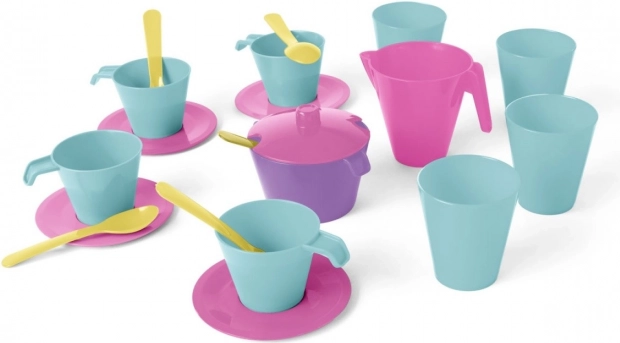 Stílusos gyerek Party Time étkészlet rózsaszín, lila és menta színekben, amely 20 darabot kínál a kreatív konyhai szerepjátékhoz. Az edények élelmiszerrel érintkezésre biztonságosak, mikrohullámú sütőben használhatók és mosogatógépben moshatók. Ideális kis házigazdáknak 1 éves kortól.