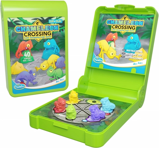 Indulj kalandos útra a ThinkFun Chameleon Crossing játékkal, ahol az a feladatod, hogy az öt elveszett kaméleont elvezesd a helyes otthoni kőre. A játék úgy van tervezve, hogy az egész család számára szórakoztató legyen, miközben a gyerekeket fontos logikai készségekre tanítja.
