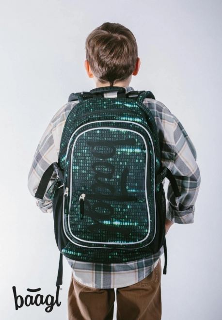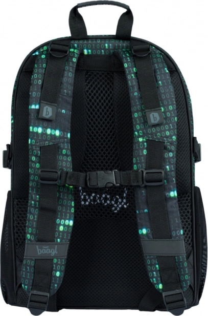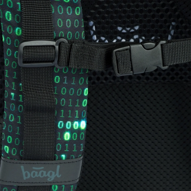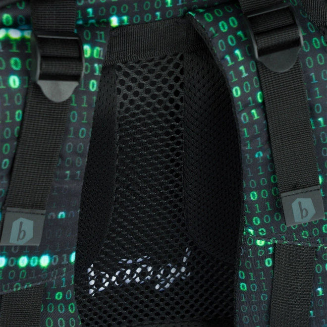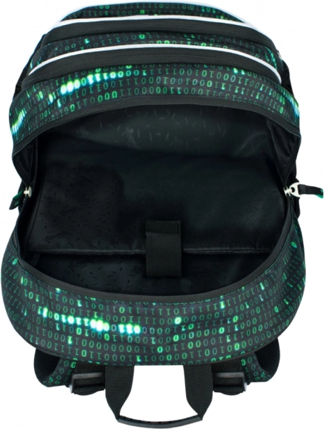 Ez a hátizsák egyedi dizájnnal büszkélkedhet, zöld és fekete színű bináris kóddal, amely minden technológia iránt érdeklődő diák figyelmét felkelti.