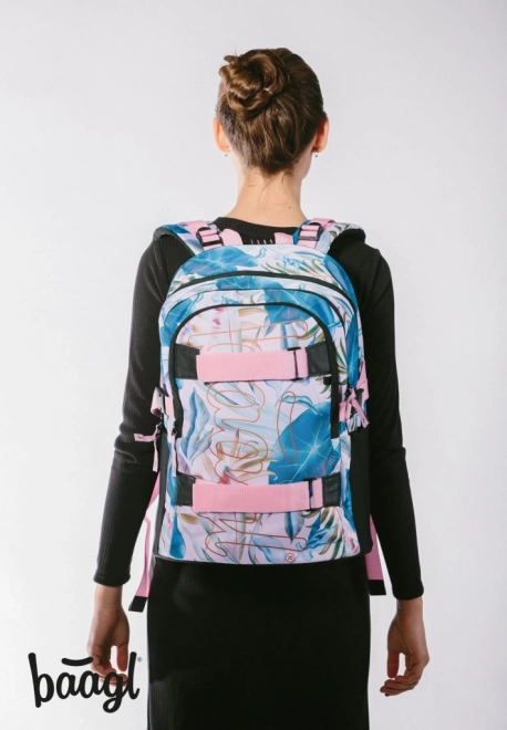 A BAAGL Skate Leafs iskolai hátizsák a stílust a funkcionalitással ötvözi. Ergonomikusan formázott hátpanel és teljesen állítható váll-, mell- és oldalsó kompressziós pántok gondoskodnak a kényelmes hordásról és a tökéletes illeszkedésről. A tartós vízlepergető anyag óvja a tartalmat, a fényvisszaverő elemek pedig szürkületben is növelik a láthatóságot.